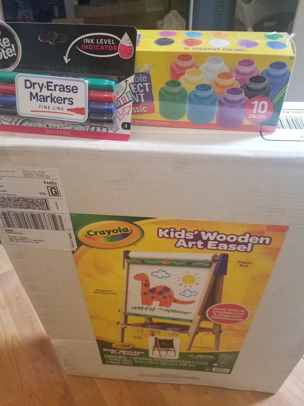 This crayola deluxe magnetic double sided easel features a easy to use easy to clean dry erase whiteboard while keeping scribbles away from your walls also can be a magnet board.