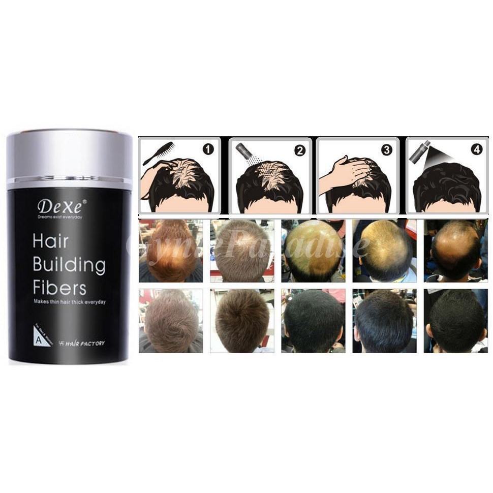 Dexe hair building fiber kit is a natural solution that instantly removes the appearance of baldness and hair thinning for both men and women.